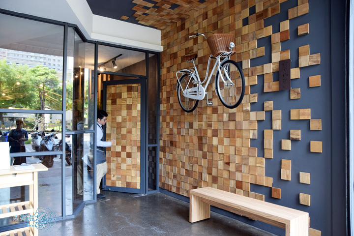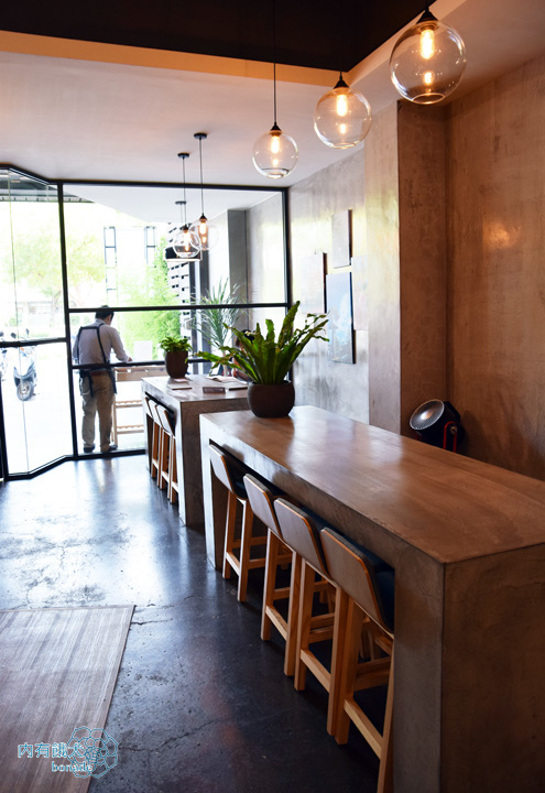 店內空間,入口處是兩座很大由水泥做成的座位區