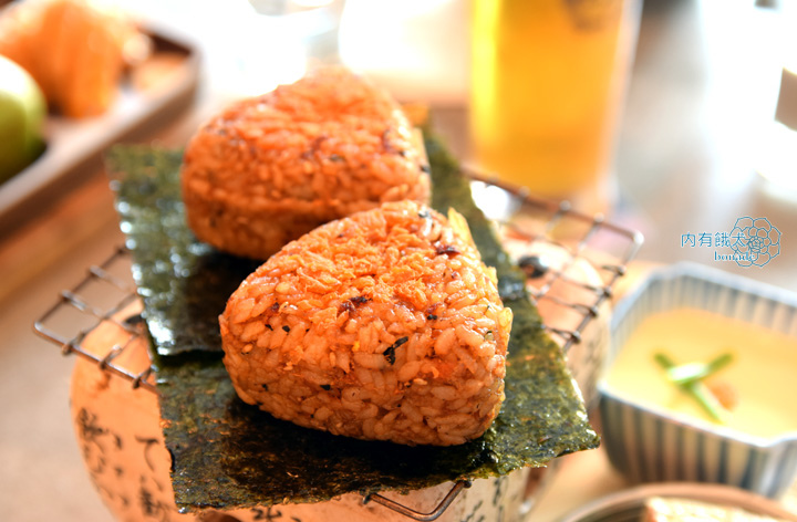 話說剛剛的歐姆蛋屬於洋食,這種烤飯糰則是和食,因此用圓形的木頭砧板