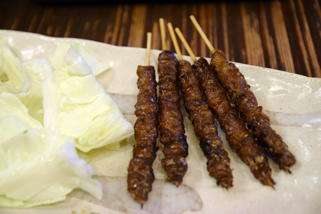 福岡的烤雞皮算名物吧,燒烤、沾醬等等動作重覆好幾次才能完成