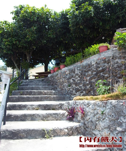 雖然地上用大塊的石板舖著,但石板與石板之間卻長出茂密青綠的草皮