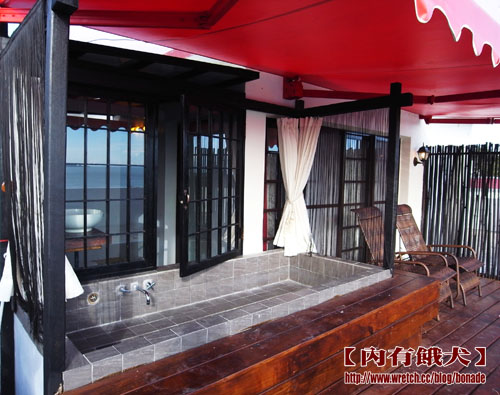 從洗手台望出去,就是室外大大的泡澡池和大大的空地