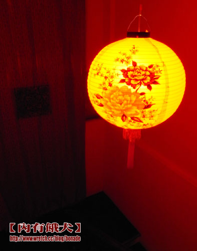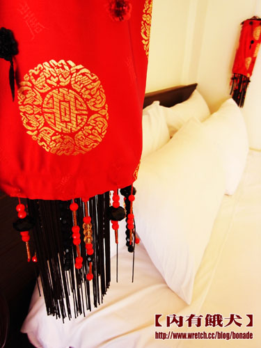 床頭還有兩盞中國風的燈飾,晚上只剩這兩盞開著時相當漂亮