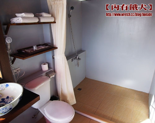 淋浴和馬桶有用簾子隔開,不怎麼要擔心踩得到處都溼答答的