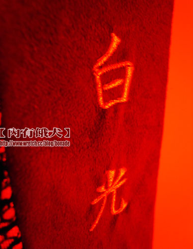用深色絨布做底,上頭繡了秀氣的「白光」二字