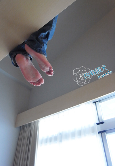 其實也不算吊在半空中,床頭應該有用其他東西固定起來,所以也不會搖來晃去