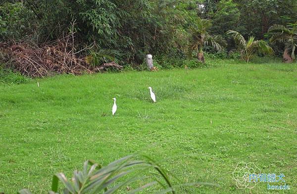 盥洗完準備用早餐,白鷺鷥也在草地上休息