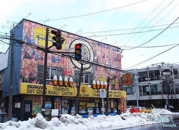右手邊三角窗的建築物是「麵廚房あじさい味彩」,逛完我們就失心瘋的跑去吃