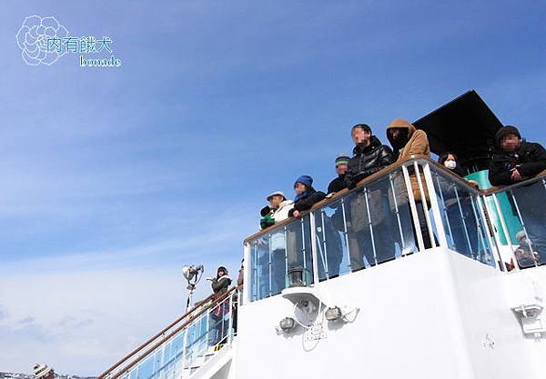 網走的海鷗一點也不怕人啊,船上這麼多觀光客,牠們仍無所畏的停下來休息