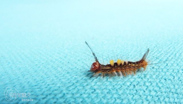 椅子上一隻迷路的毛毛蟲......其實那棵大葉欖仁的葉子慘不忍睹,不曉得是不是這種毛毛蟲的關係